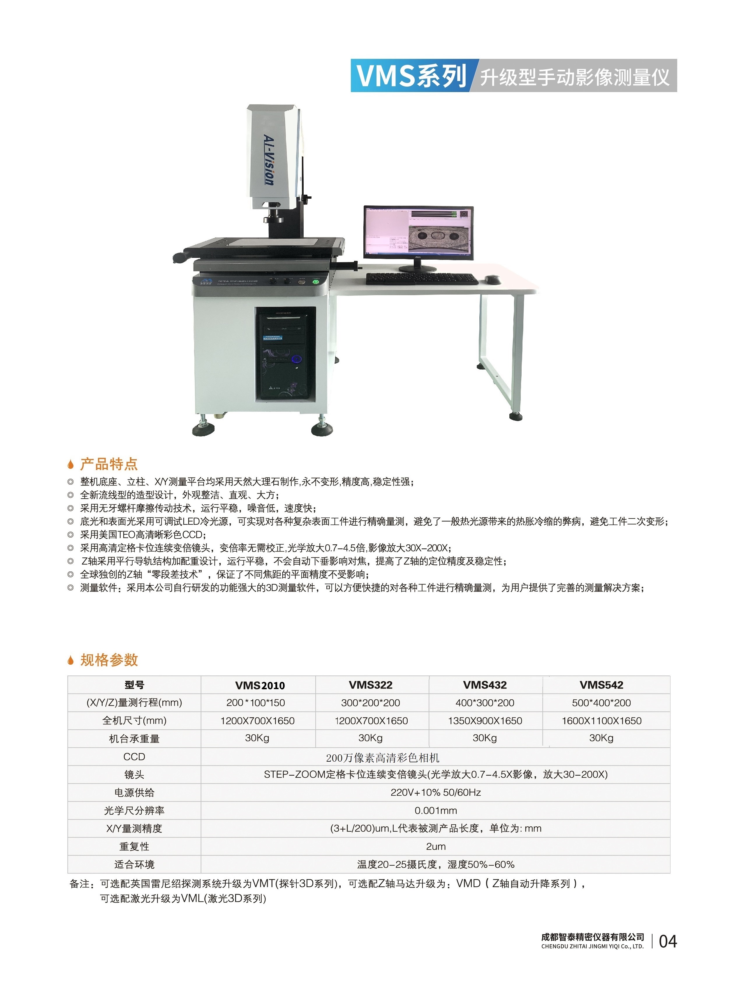 成都智泰精密儀器有限公司專(zhuān)注于精密測(cè)量?jī)x器,人工智能,智能制造領(lǐng)域,專(zhuān)業(yè)從事智能視覺(jué)自動(dòng)化檢測(cè)解決方案的貿(mào)易型企業(yè)。公司成立于2011年,位于天府之國(guó)成都,現(xiàn)有行業(yè)精英十余人,辦公倉(cāng)儲(chǔ)面積200余平米。 公司主要產(chǎn)品為精密光學(xué)影像測(cè)量?jī)x,精密輪廓形狀測(cè)量?jī)x,精密機(jī)器人定位系統(tǒng),精密智能視覺(jué)尺寸檢測(cè)儀器,精密表面缺陷智能檢測(cè)設(shè)備,工業(yè)工程特種機(jī)器人。 公司憑借過(guò)硬的技術(shù)實(shí)力和產(chǎn)品方案,率先進(jìn)入智能視覺(jué)自動(dòng)化檢測(cè)領(lǐng)域,推廣以精密智能視覺(jué)自動(dòng)化檢測(cè)為基礎(chǔ)的機(jī)器人自動(dòng)化應(yīng)用,公司不斷整合上下游的資源,擁有巨大的全產(chǎn)業(yè)鏈優(yōu)勢(shì)??蛻羧后w覆蓋了我國(guó)精密制造業(yè)的多數(shù)領(lǐng)域,包括航空、航天、軍工、汽車(chē)、新能源、光伏、食品,精密電子、精密機(jī)械、模具、PCB、LCD、五金、塑膠、醫(yī)療、教育、計(jì)量及科研院所等行業(yè)。 公司創(chuàng)新的產(chǎn)品能滿足生產(chǎn)與制造行業(yè)客戶的要求,訓(xùn)練有素的工程師能及時(shí)提供多種技術(shù)服務(wù),如解...